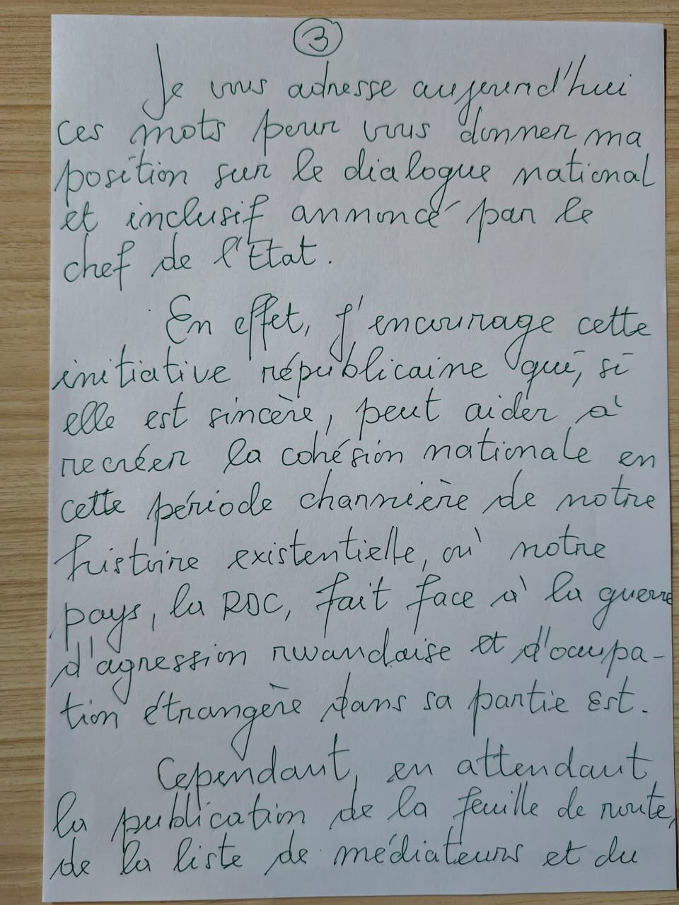 Depuis son lieu de détention, Constant Mutamba a livré son appréciation sur l’initiative du dialogue national, qu’il dit accueillir avec prudence, tout en la subordonnant à des conditions politiques et sécuritaires claires.
