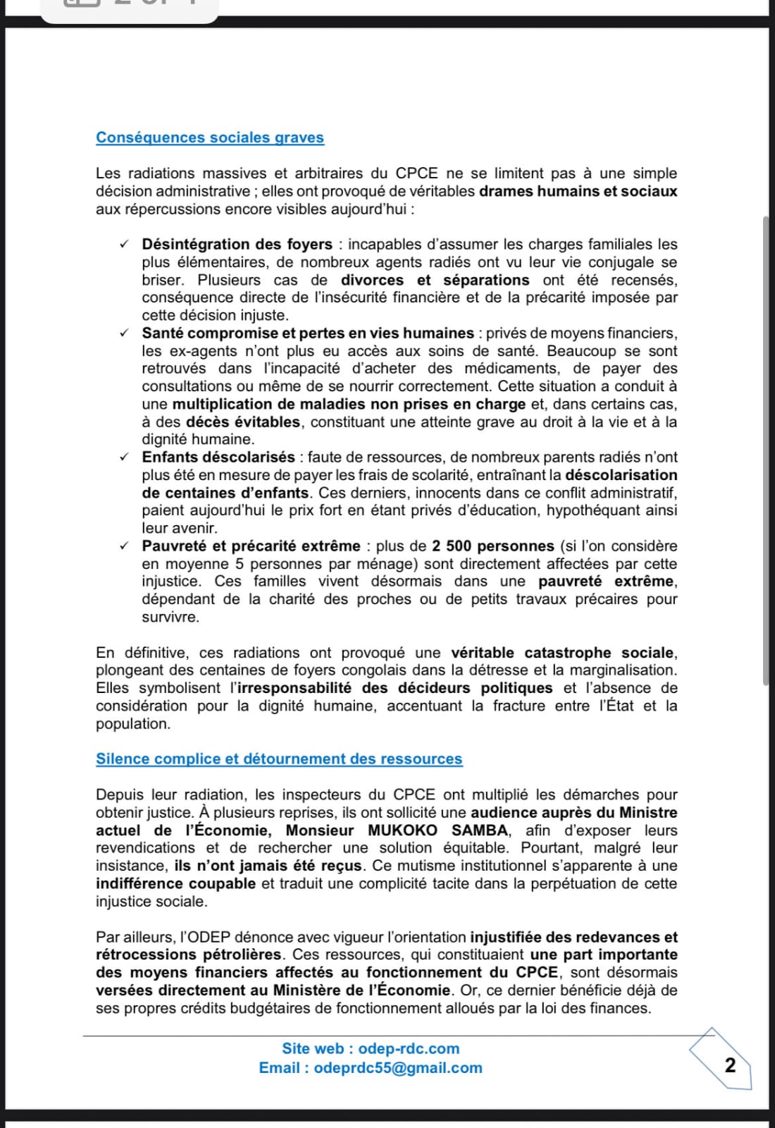 RDC: L’ODEP DÉNONCE L'EVICTION ILLÉGALE DE 500 AGENTS DU CPCE SOUS VITAL KAMERHE